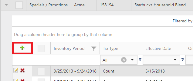 To add a single item > search for item you wish to add > click the expand button (arrow) next to that item > click the Add Record button (green plus sign).