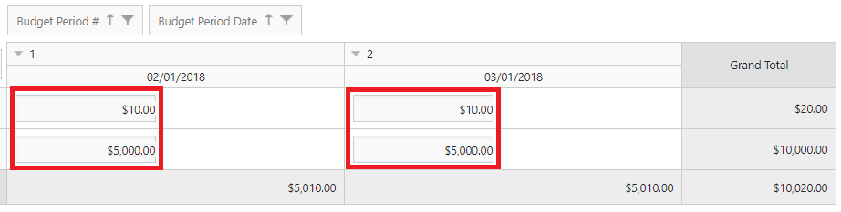 As you will see, making changes this way comes in the form of a grid with inline editing capabilities. Each row designates a GL Account and each column a Budget Period.