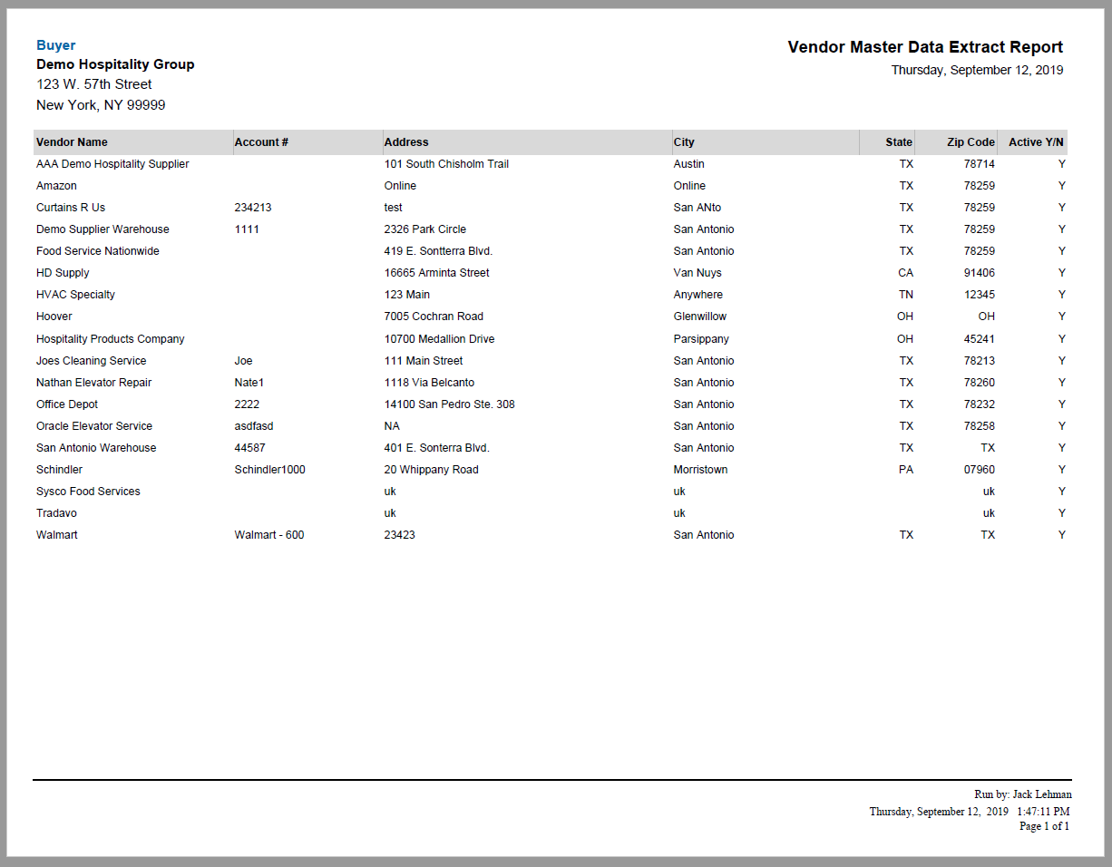 General Setup | Vendor Master Data Extract Report | List of all vendors, account numbers, addresses, and statuses. | |