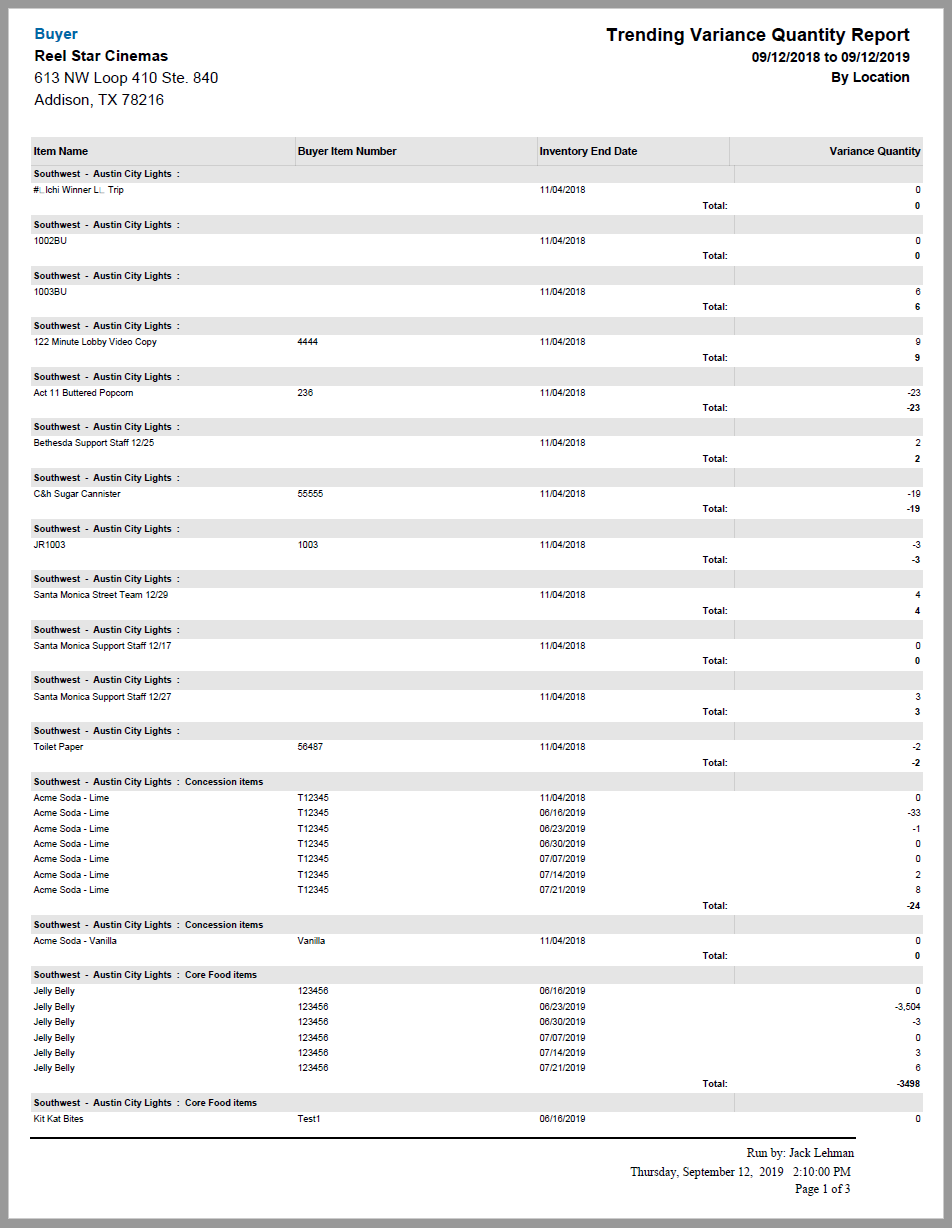 Inventory | Trending Variance Quantity Report | List of items per location with variance quantity. | |